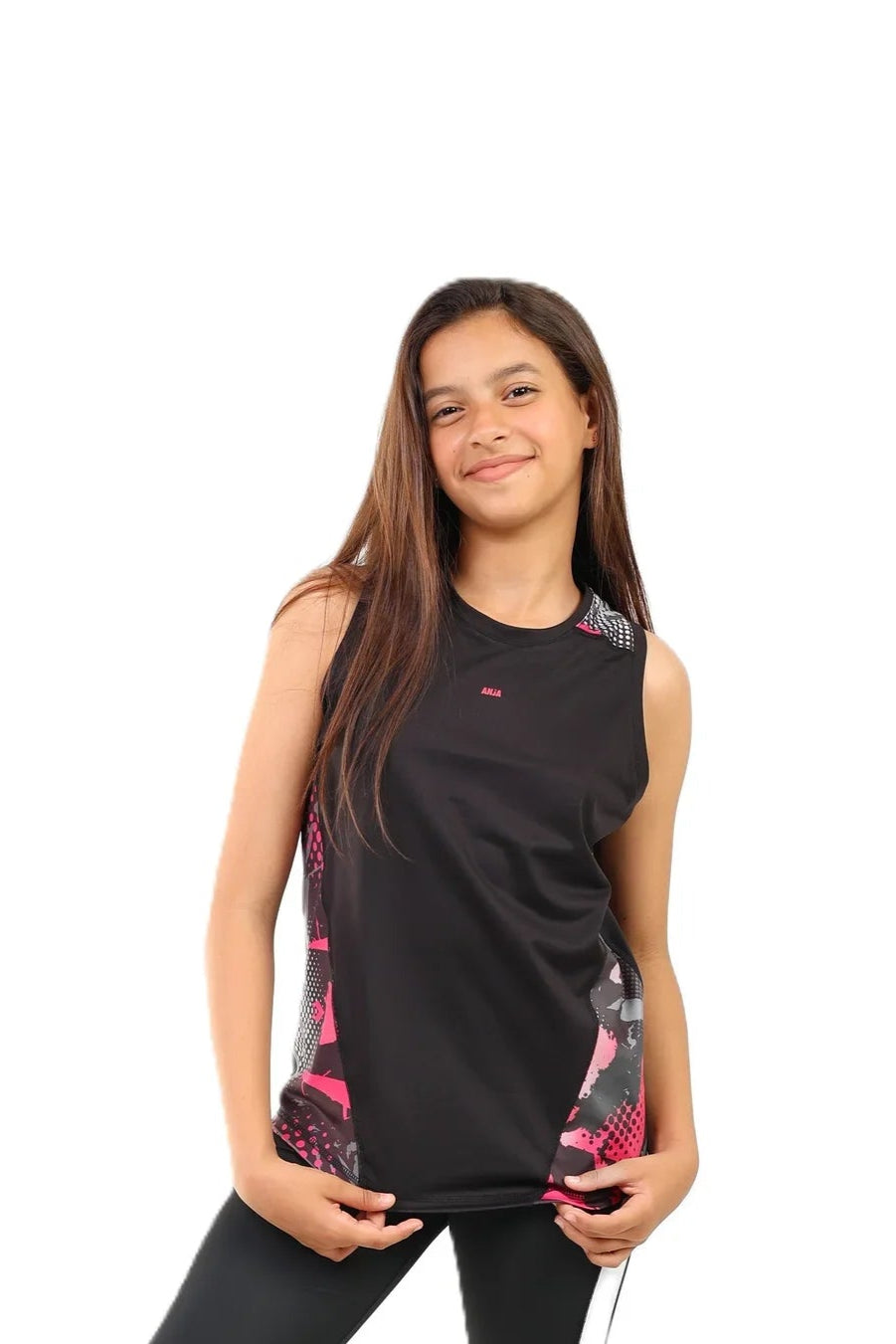 Girls Sleeveless Performance T-Shirt – Two-Tone Top