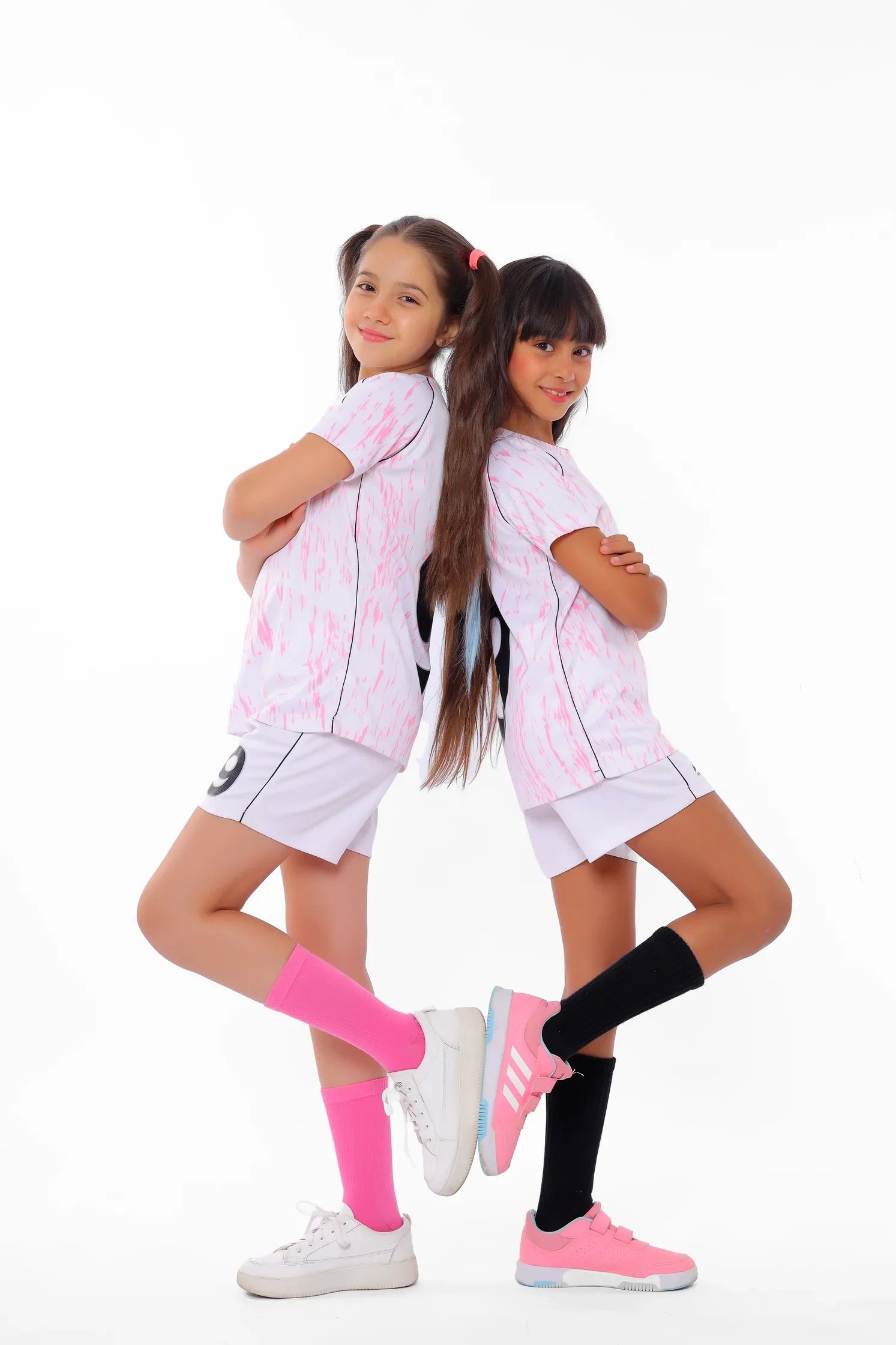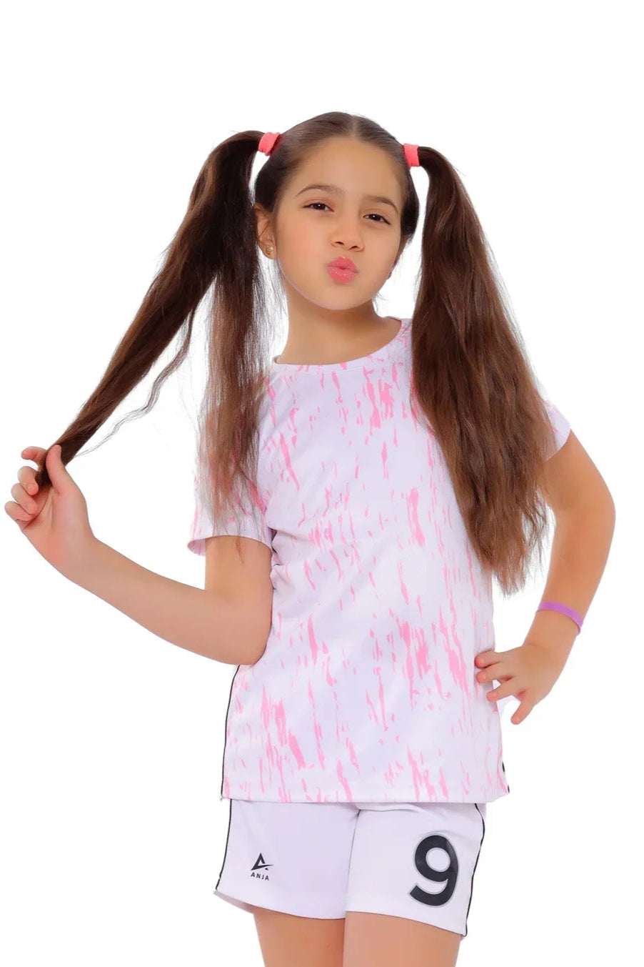 Girls White & Pink Splash Athletic Kit – Sporty T-Shirt and Shorts Set